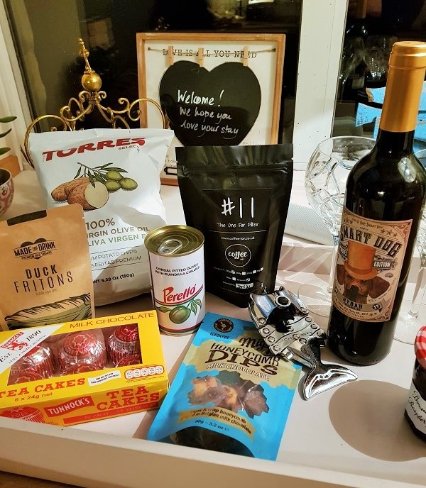 There was a luxury welcome hamper featuring a selection of tasty treats (succulent olives, cheeses, chocolate coated cinder toffee, hand cooked crisps, craft beers, Tunnock’s tea cakes and a delicious Portugese red from the Alentejo countryside) all lovingly sourced from local delicatessen Scott’s of Alnmouth.