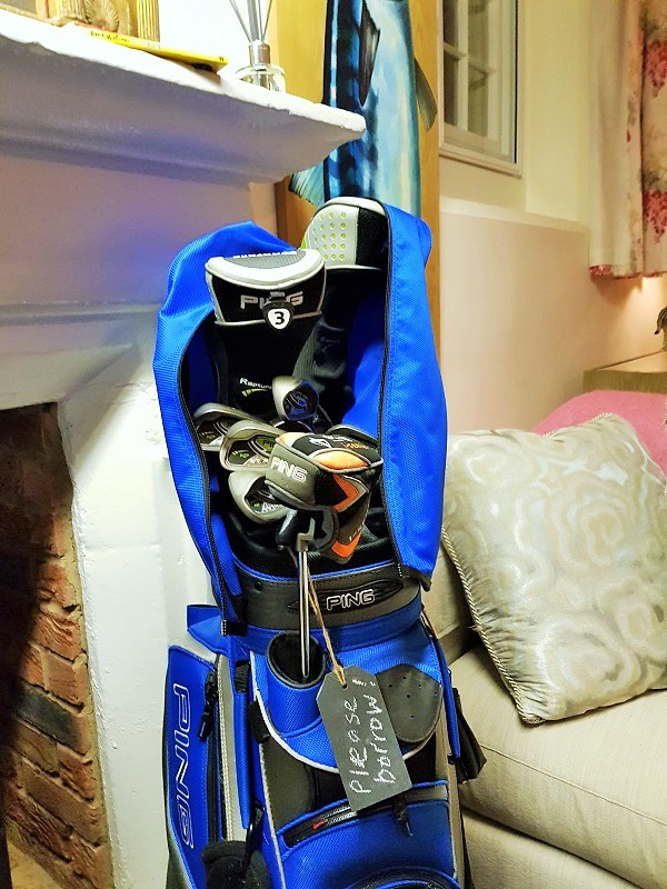 There is even a framed golf glove signed by former World Number One golfer and Ryder Cup hero Lee Westwood, along with a full set of Ping Golf clubs with a hand written tag that simply says “please borrow.”